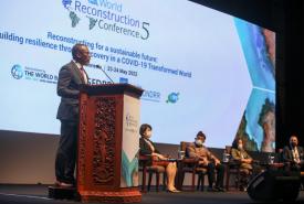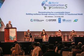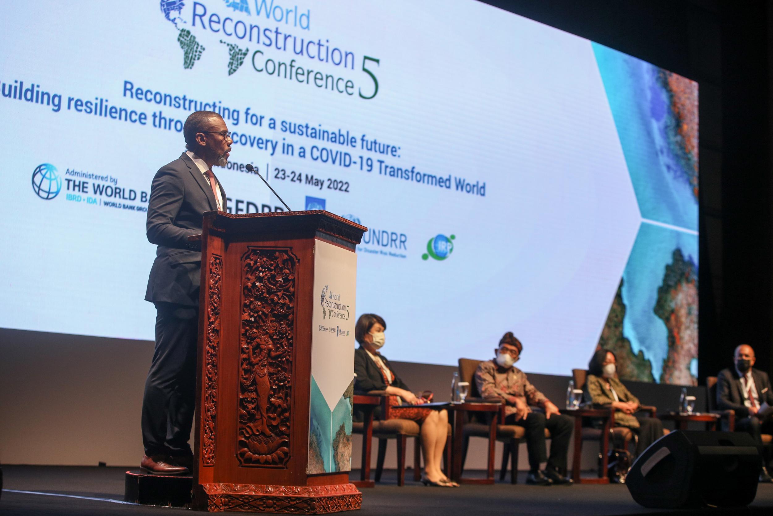 Keynote Speech Menteri Koordinator Bidang Pembangunan Manusia dan Kebudayaan, Muhadjir Effendy dalam pelaksanaan World Reconstruction Conference (WRC) ke-5 di BICC Bali, Senin (23/5).