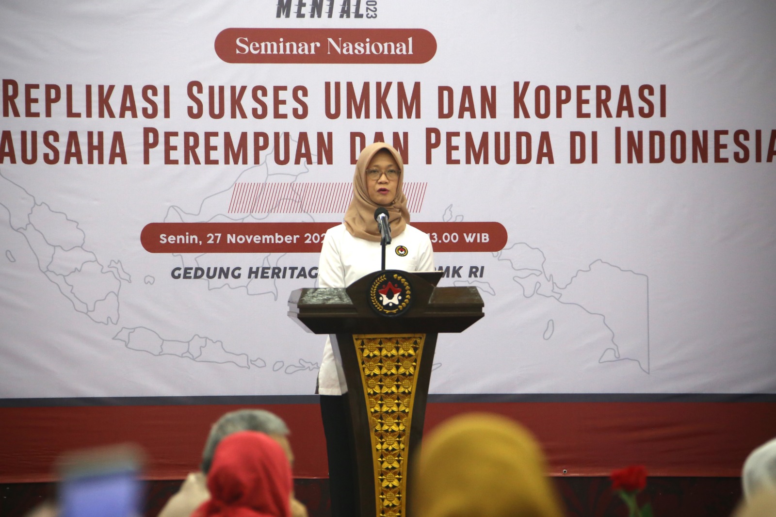 Hal tersebut disampaikannya saat memberikan laporan pada kegiatan Seminar Nasional Gelar Karya Revolusi Mental 2023 bertajuk "Replikasi Sukses UMKM dan Koperasi Bagi Wirausaha Perempuan dan Pemuda di Indonesia", di Ruang Heritage Kemenko PMK, pada Senin (27/11/2023).