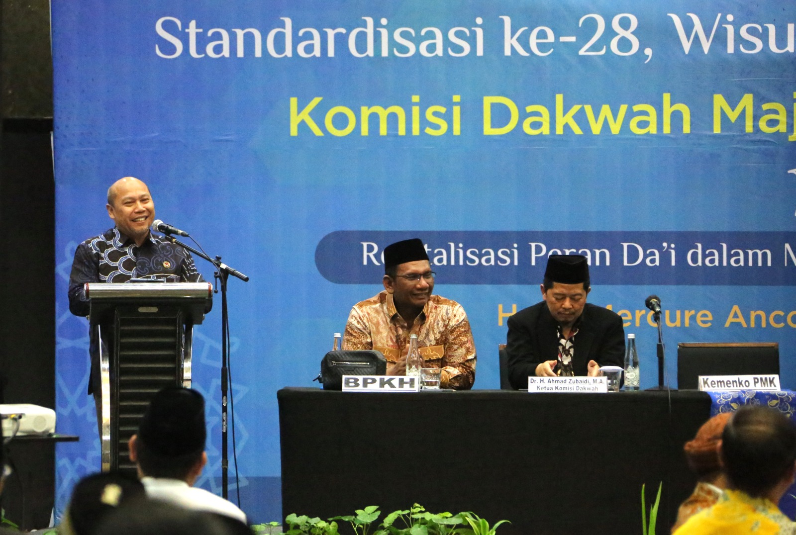 KEMENKO PMK -- Deputi Bidang Koordinasi Peningkatan Kualitas Pendidikan dan Moderasi Beragama Kemenko PMK Warsito mewakili Menko PMK Muhadjir Effendy dalam menghadiri sekaligus memberikan sambutan pada acara Multaqo Du’at (Kongres Dai) Nasional IV di Hotel Mercure Ancol, Selasa (5/12/2023).