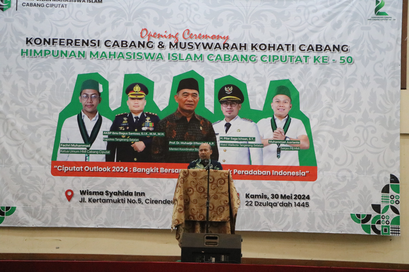 Hal tersebut disampaikannya saat mewakili Menko PMK Muhadjir Effendy dalam kegiatan Opening Ceremony Konferensi Cabang dan Musyawarah Kohati Cabang Himpunan Mahasiswa Islam Cabang Ciputat ke-50, di Syahida Inn, Ciputat, Tangerang Selatan, Banten, pada Kamis (30/5/2024).