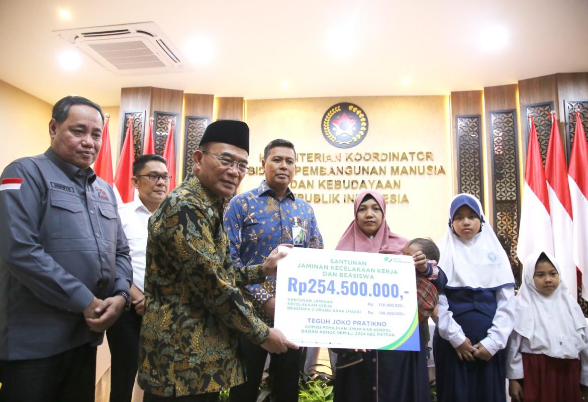 Menko PMK Serahkan Klaim Santunan Jaminan Kecelakaan Kerja dan Jaminan Kematian Bagi Petugas Ad Hoc Pemilu