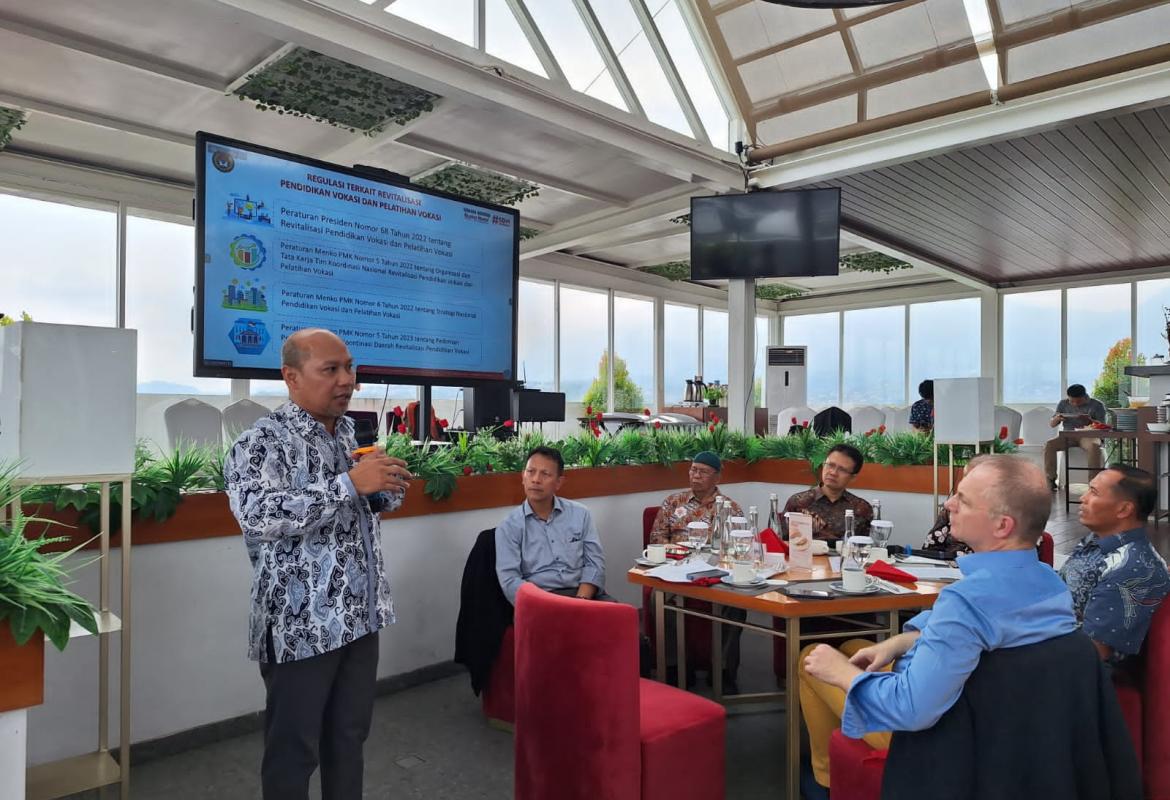 KEMENKO PMK -- Deputi Bidang Koordinasi Peningkatan Kualitas Pendidikan dan Moderasi Beragama, Warsito bersama denga