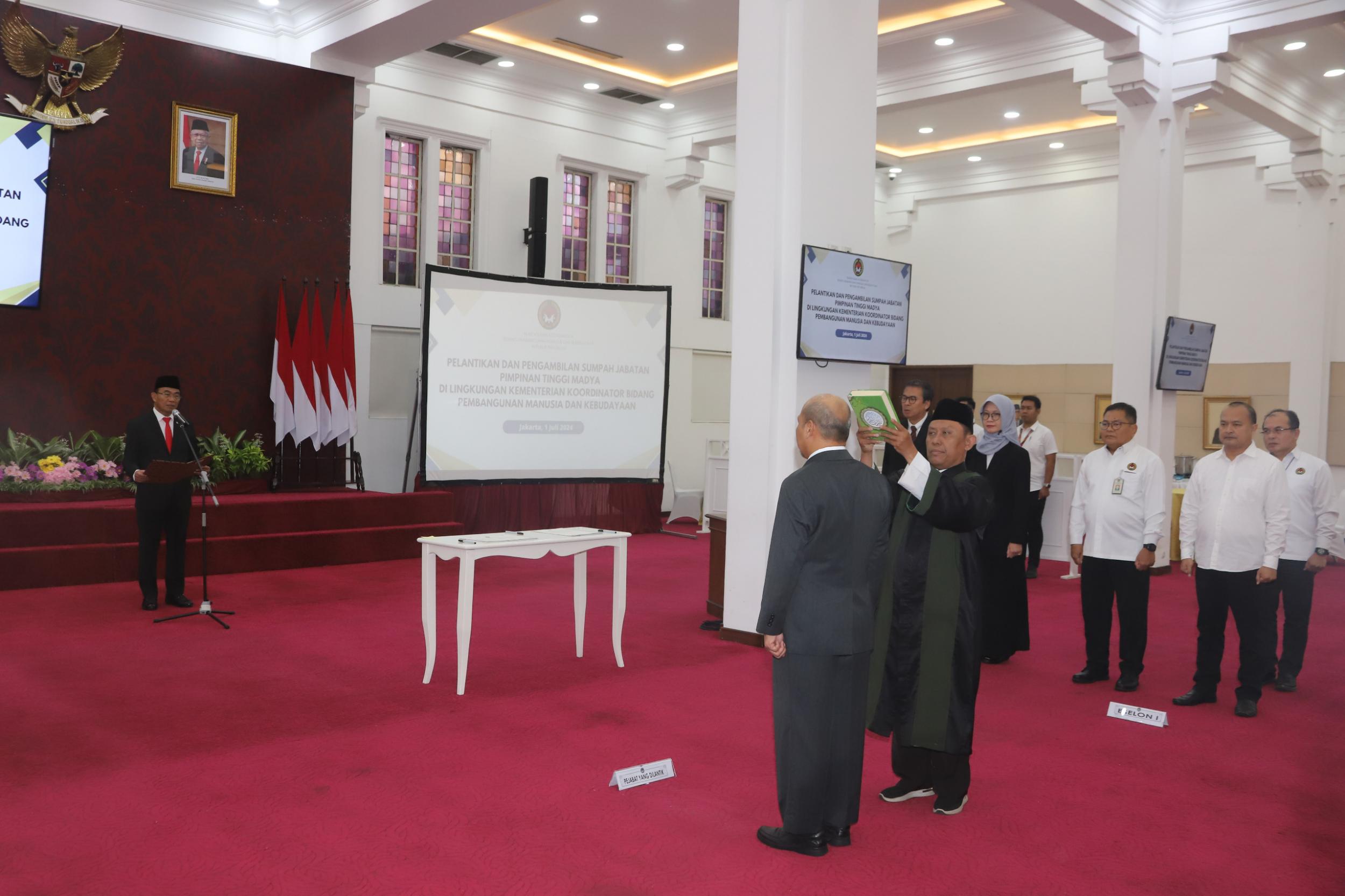 Pelantikan ini dilakukan berdasarkan Keputusan Presiden Republik Indonesia Nomor 76/TPA Tahun 2024 tentang Pemberhentian dan Pengangkatan dari dan Dalam Jabatan Pimpinan Tinggi Madya di Lingkungan Kementerian Koordinator Bidang Pembangunan Manusia dan Kebudayaan.
