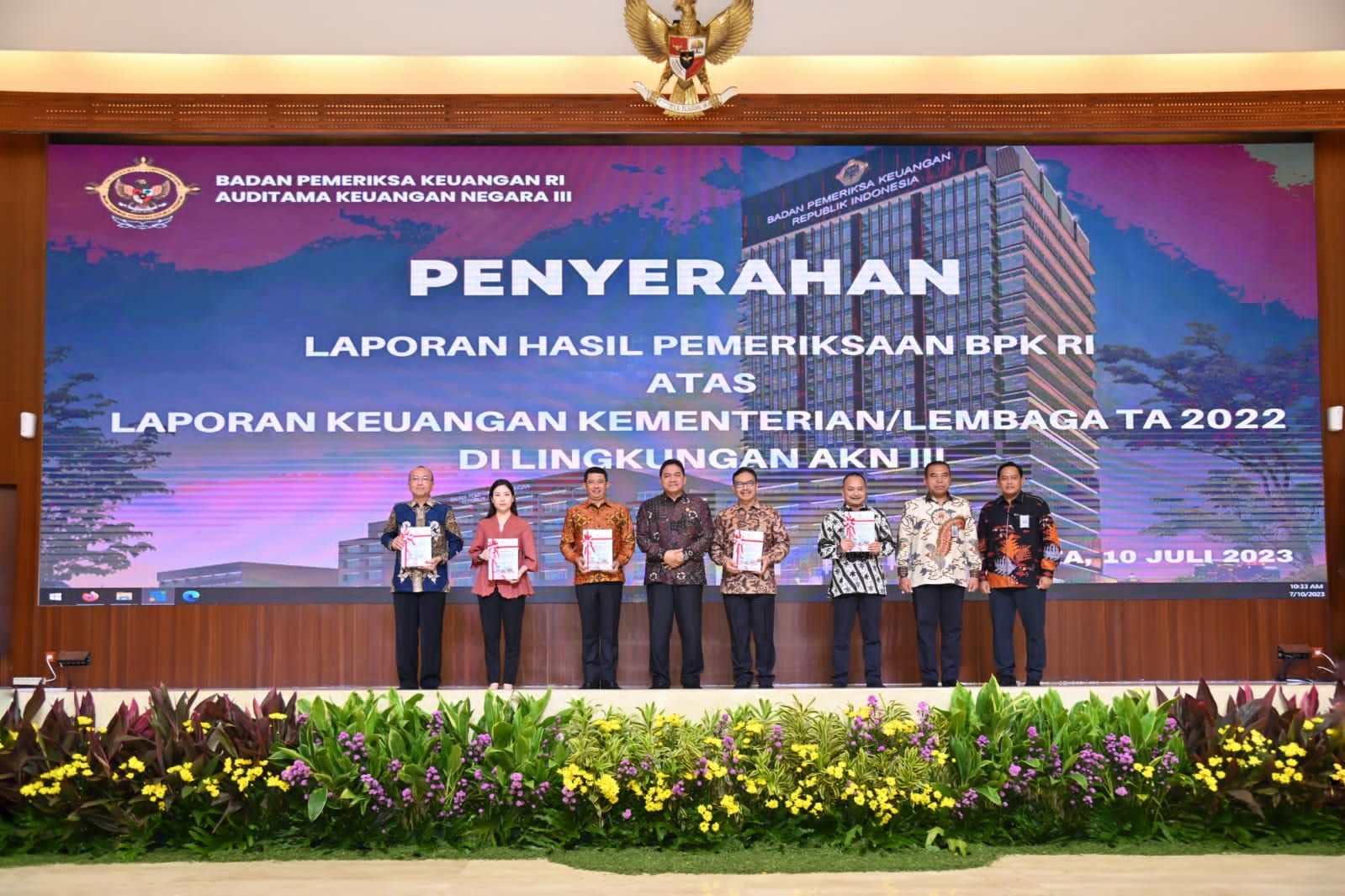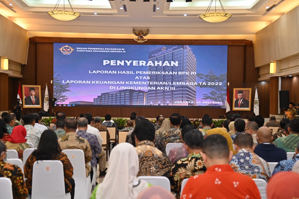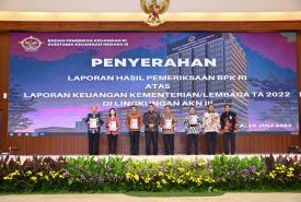 KEMENKO PMK -- Seskemenko PMK Andie Megantara menerima penyerahan "Laporan Hasil Pemeriksaan BPK RI" berdasarkan laporan keuangan yang telah diserahkan sebelumnya oleh kementerian dan lembaga pada tahun anggaran 2022 lingkungan Auditorat Utama Keuangan Negara III, di Auditorium Lt. 2 Tower Badan Pemeriksa Keuangan RI, Jakarta, pada Senin (10/7).