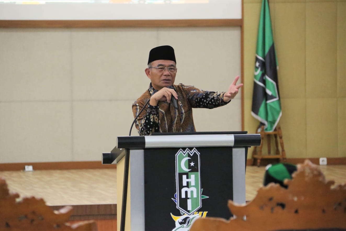 KEMENKO PMK -- Menteri Koordinator Bidang Pembangunan Manusia dan Kebudayaan (Menko PMK) Muhadjir Effendy menyampaikan keynote speech dalam pembukaan kegiata "Advance Training Tingkat Nasional LK-3 Himpunan Mahasiswa Islam (HMI)", yang diselenggarakan oleh Badan Koordinasi HMI Jabodetabeka-Banten, di Pusdiklat Kemensos, Jakarta Selatan, pada Rabu (01/03/2023).